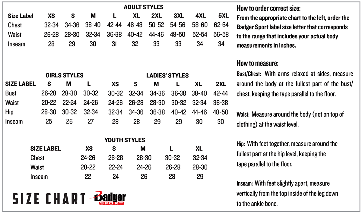 - Badger heat seal logo on left hip